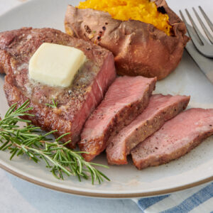 - T-Bone, Sirloin, Porterhouse or NY Strip Steak, at room temperature