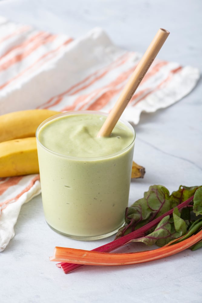 I began doing some research on foods that naturally can help reduce stress and anxiety when the idea for this smoothie came to me, and I found a perfectly delicious combo. Dark leafy green vegetables (I used chard in this recipe) are one of the most nutrient dense foods. Chard is a great source of Vitamin C, to help boost immunity, and magnesium, which can reduce our stress hormones and inflammation.