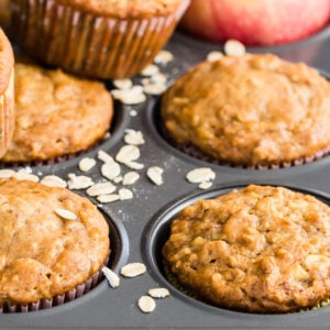 You can make these muffins with all kinds of different apple varieties. Some of my favorites are Gala, Fuji, and Pippin (if you want them to be a little more tart) or any good baking apple will do nicely. The addition of the bananas in these muffins give them a divinely moist texture, while also adding some valuable nutrients like potassium.
