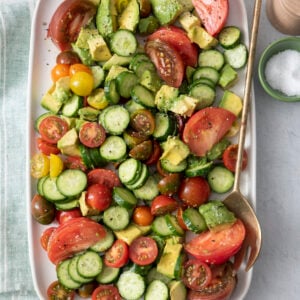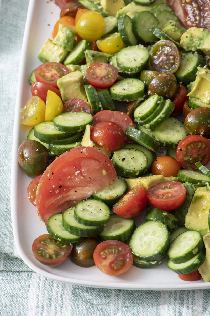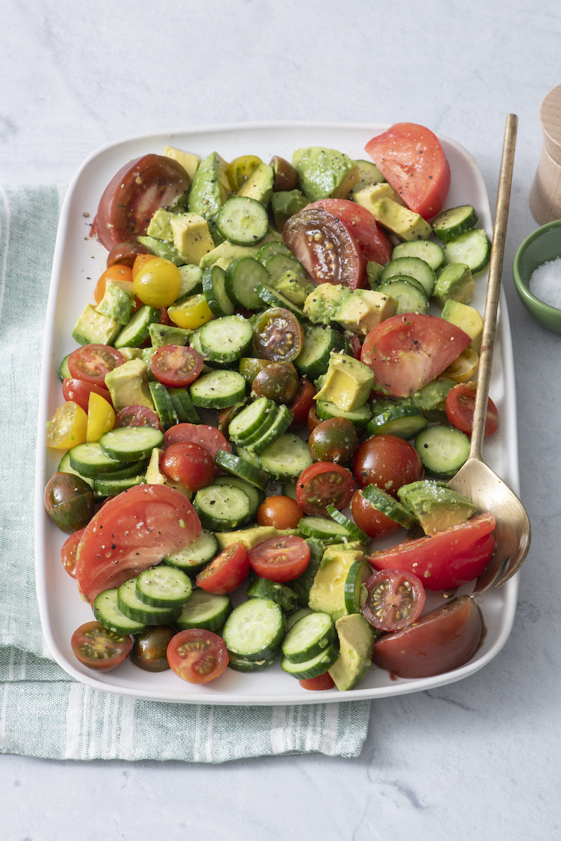 Is there anything better than a side dish filled with the season’s freshest produce? I don’t think so! This Avocado Cucumber Tomato Salad is the perfect recipe to go along with your grilling this summer!