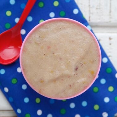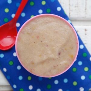 One of my favorite things about baby food is that it’s just pure, wholesome and delicious. When these fruits are at their ripest, it’s so heavenly tasting, you don’t need to add anything to this Banana Pear Peach puree.
