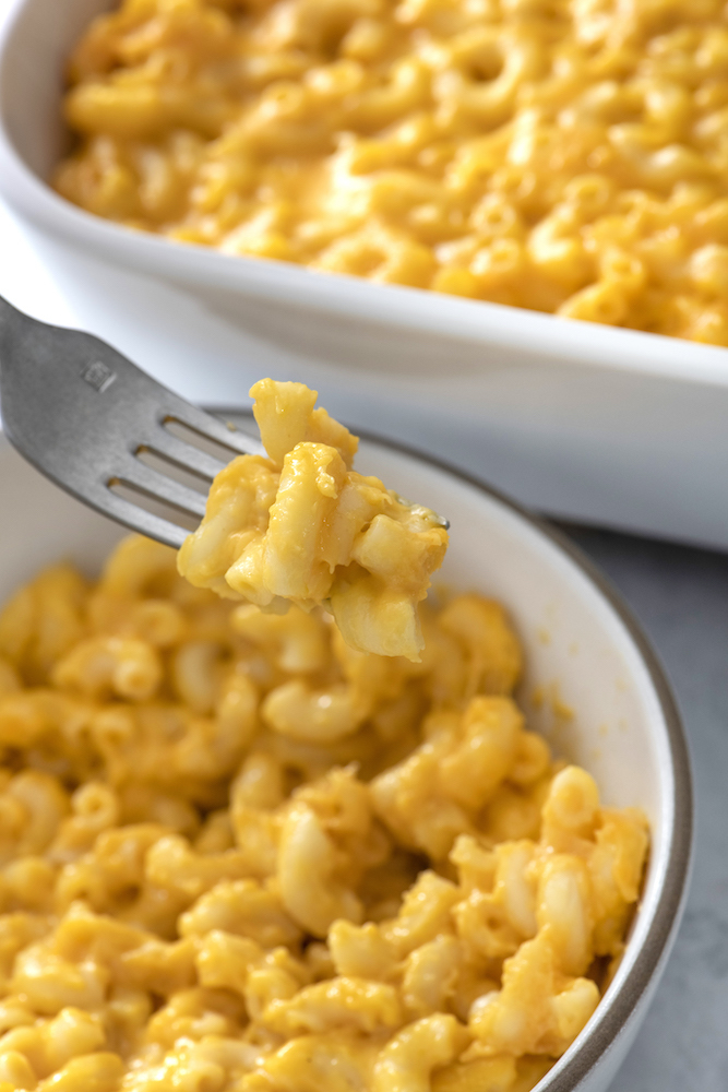 The sauce is incredibly smooth and creamy with a touch of sweetness that clings to every bite of pasta. This isn’t mac and cheese with chunks of butternut squash cooked into it, though. I use butternut squash soup, so it’s also much lighter than most mac and cheese recipes without sacrificing any of the delicious cheesiness you know and love from a mac and cheese. Sure you could get your veggies eating Green Mac and Cheese, but the butternut squash soup adds tons of bright flavor, nutrition and replaces much of the milk and cream you would typically use!