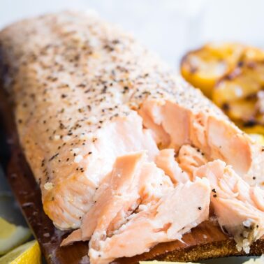 Want the easiest recipe that uses only gorgeous wild salmon, salt and pepper and includes virtually zero clean up at the end? This Cedar Plank Salmon recipe will change your life when it comes to making an easy entree that’s always a crowd pleaser. I promise you that when you show up with this in hand you will be extremely popular.