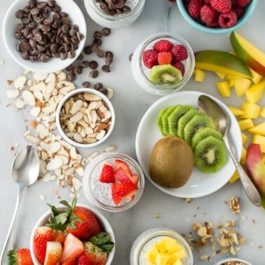 One of the best parts of chia seed pudding is getting to add your favorite toppings. The possibilities are limitless. Just make sure you add the toppings after serving. Here are some of my favorite: