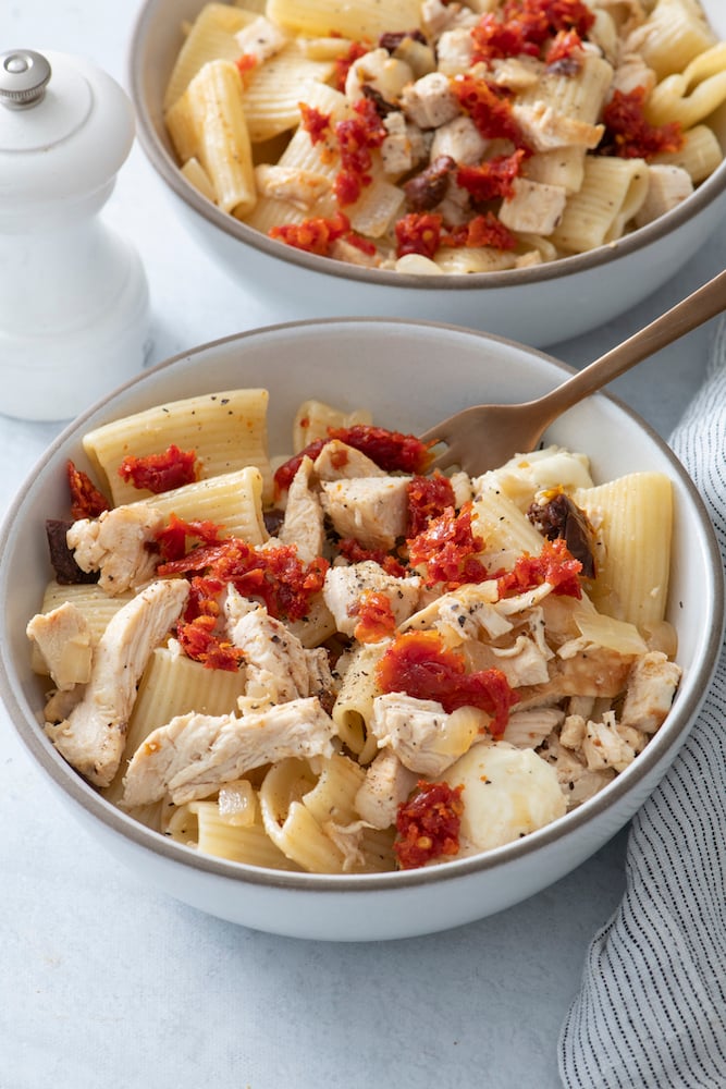 This Chicken Mozzarella Pasta is so easy to make and can be ready in under 30 minutes! It’s a delicious weeknight dinner the whole family will love.