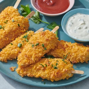 Next time you’re looking for a fun and tasty way to enjoy chicken fingers, try them on a stick! Let me know what you think in the comments or tag me on social media if you make these!