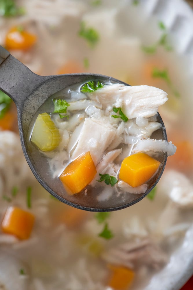 Love this simple, adaptable recipe for chicken soup and make it often at my daughter’s request. In our version, I add the carrots and celery at the half way mark so they don’t end up mushy. Also enjoy it with a good noodle that I let cook in the broth after removing the chicken. Whatever way you enjoy it, it’s perfect any time the weather is cool.