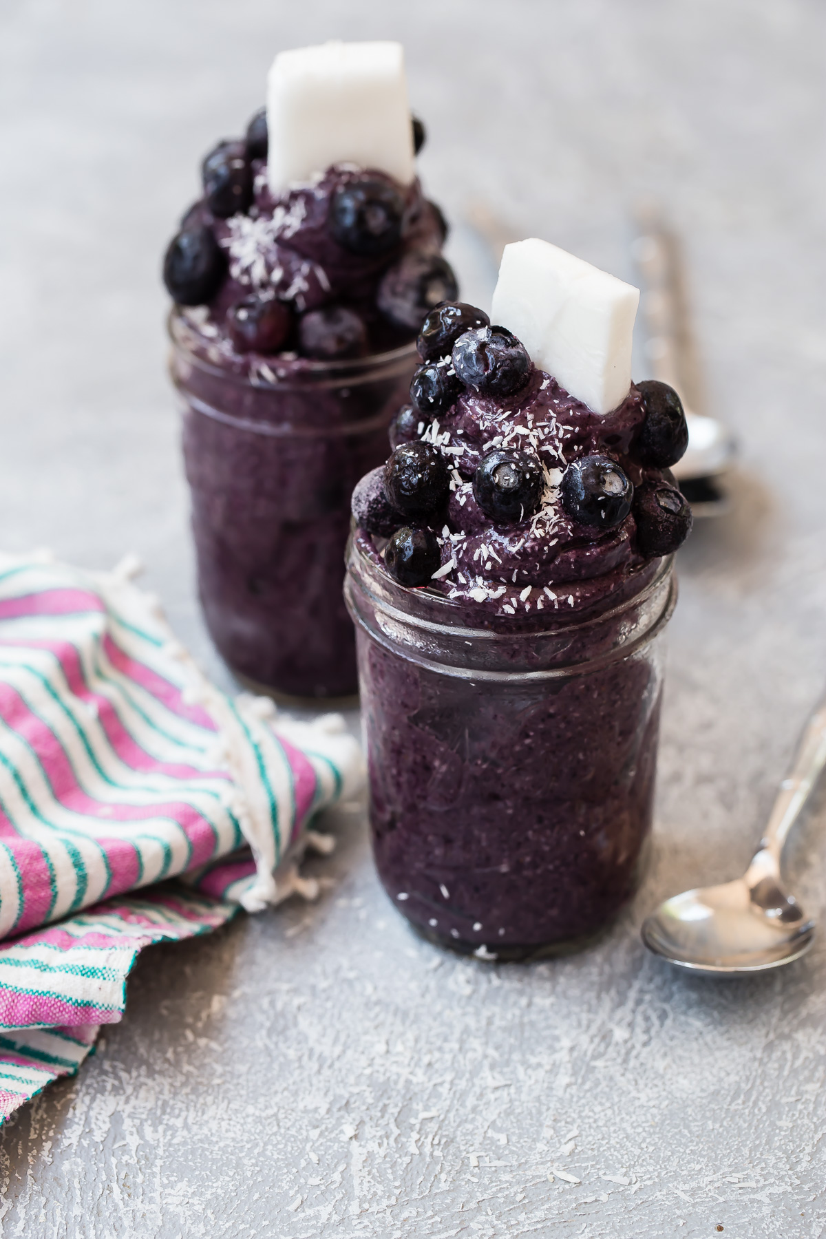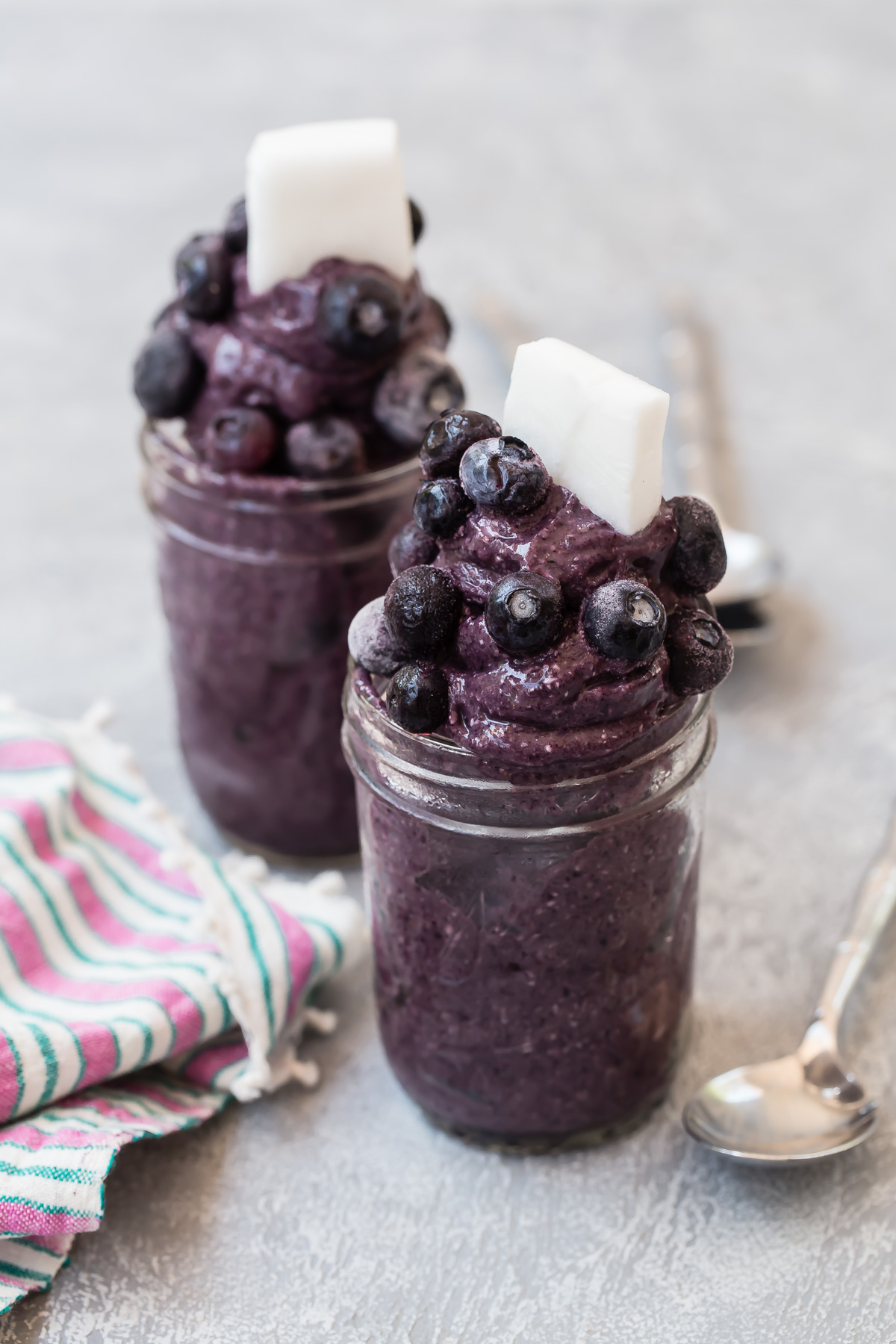 Hi there! We had made chocolate banana nice cream for desert tonight! Funny to see your post afterwards. Would you mind letting me know, what is the white thingy in the blueberry nice cream? Also, where do you get frozen coconut? This is totally new to me. 🙂