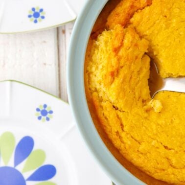 I don’t live in Kentucky anymore, so this year we’re going to throw our own little Derby party and get all dressed up with big hats, seersucker suits and all have cold mint juleps in hand. This Creamy Corn Pudding will on hand as the perfect accompaniment to some ham, Strawberry Spinach Salad, fried chicken and of course, Derby Pie. I’m getting excited just thinking about it!