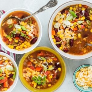 This Crock Pot Mexican Corn and Bean Soup is a great way to make both of those things happen. It takes less than 15 minutes to put this hearty dish together in the crock pot and it features a rainbow of nutritious veggies your kids are sure to love.