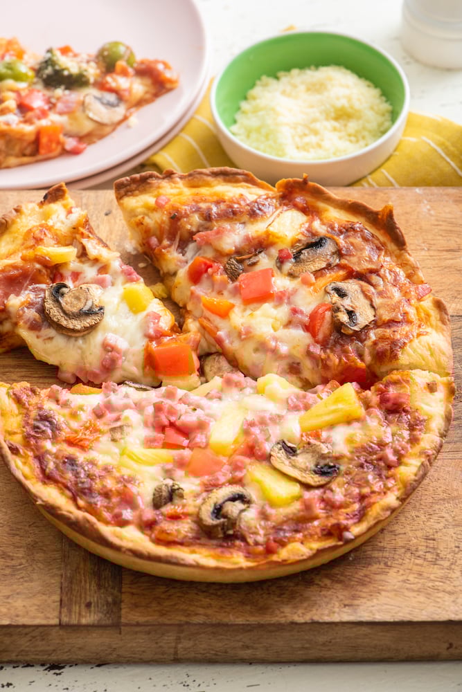 I think the reason our family is so pizza obsessed is because it’s such a customizable dish. We can make one with only vegetarian toppings for Kenya or with dairy-free cheese for Gemma, and maybe a meat lovers for Chloe. It’s always a win-win with everyone leaving the dinner table fully satisfied. It’s a great recipe to get kids involved in the kitchen too, which I’m always a big fan of.