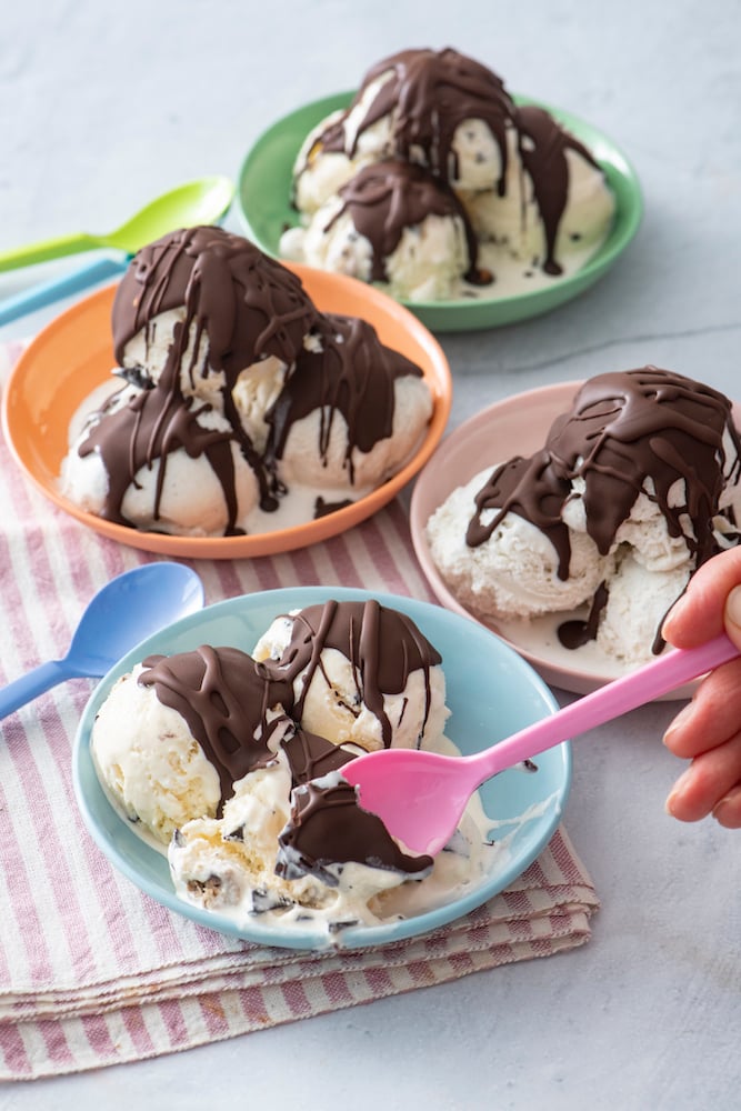 In our house, chocolate can be one of the paths towards happiness, so I filled two small bowls with luscious vanilla bean ice cream and let the kids drizzle on a bit of my Homemade Magic Shell. They had never seen anything like it. Just like my own first experience of squeezing it onto ice cream out of the tube when I was a kid, they totally enjoyed the same fun (only without all the unnecessary additives).