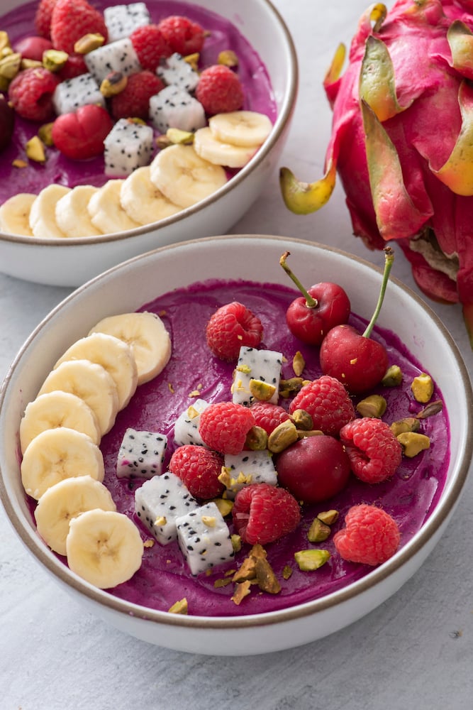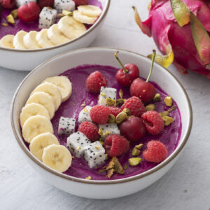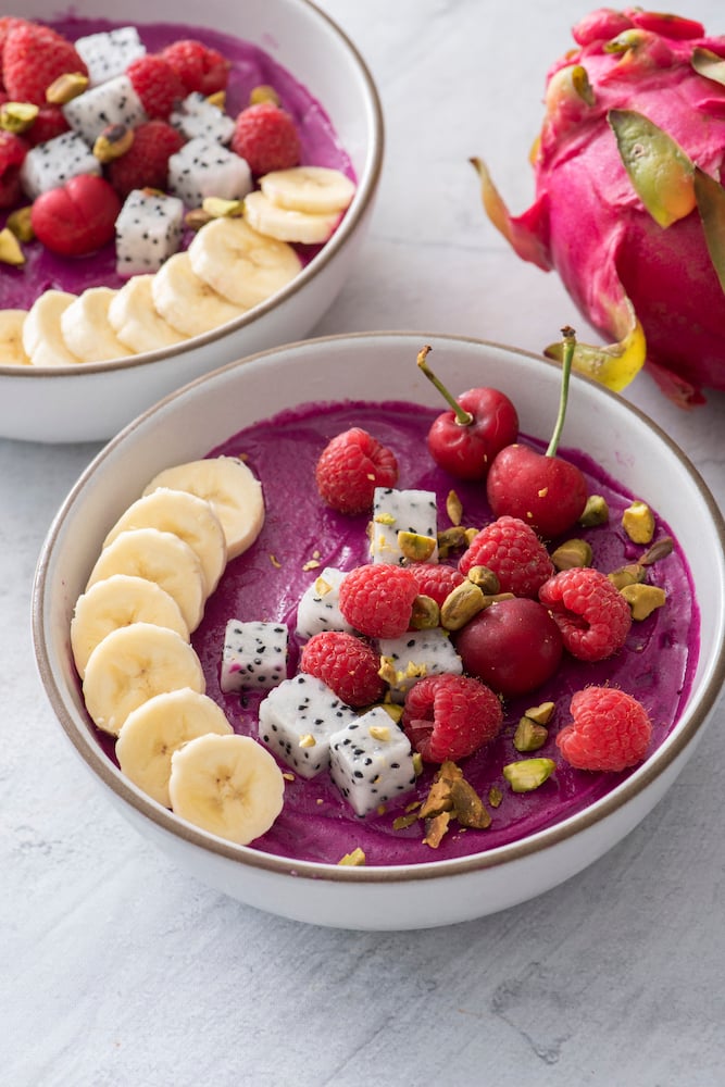 Smoothie Bowls are on of our go-to treats for breakfast, snacks or even dessert. This Dragon Fruit Smoothie Bowl is packed with good for you ingredients and tastes incredible!