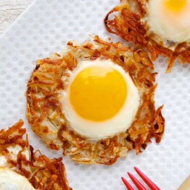 […] I found the Egg Crispy Potato Nests over at Weelicious. Not only are these adorable, but I love eggs and hashbrowns. […]