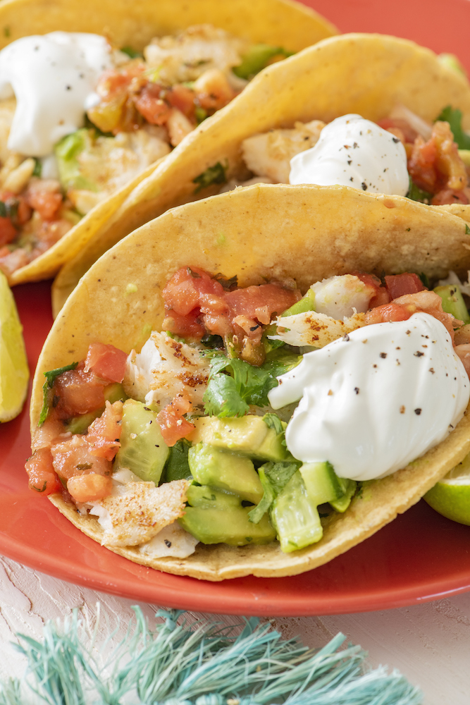 Fish Tacos are one of my favorite summertime meals because they’re light and super flavorful! Fresh, flakey fish with all the toppings can’t be beat.