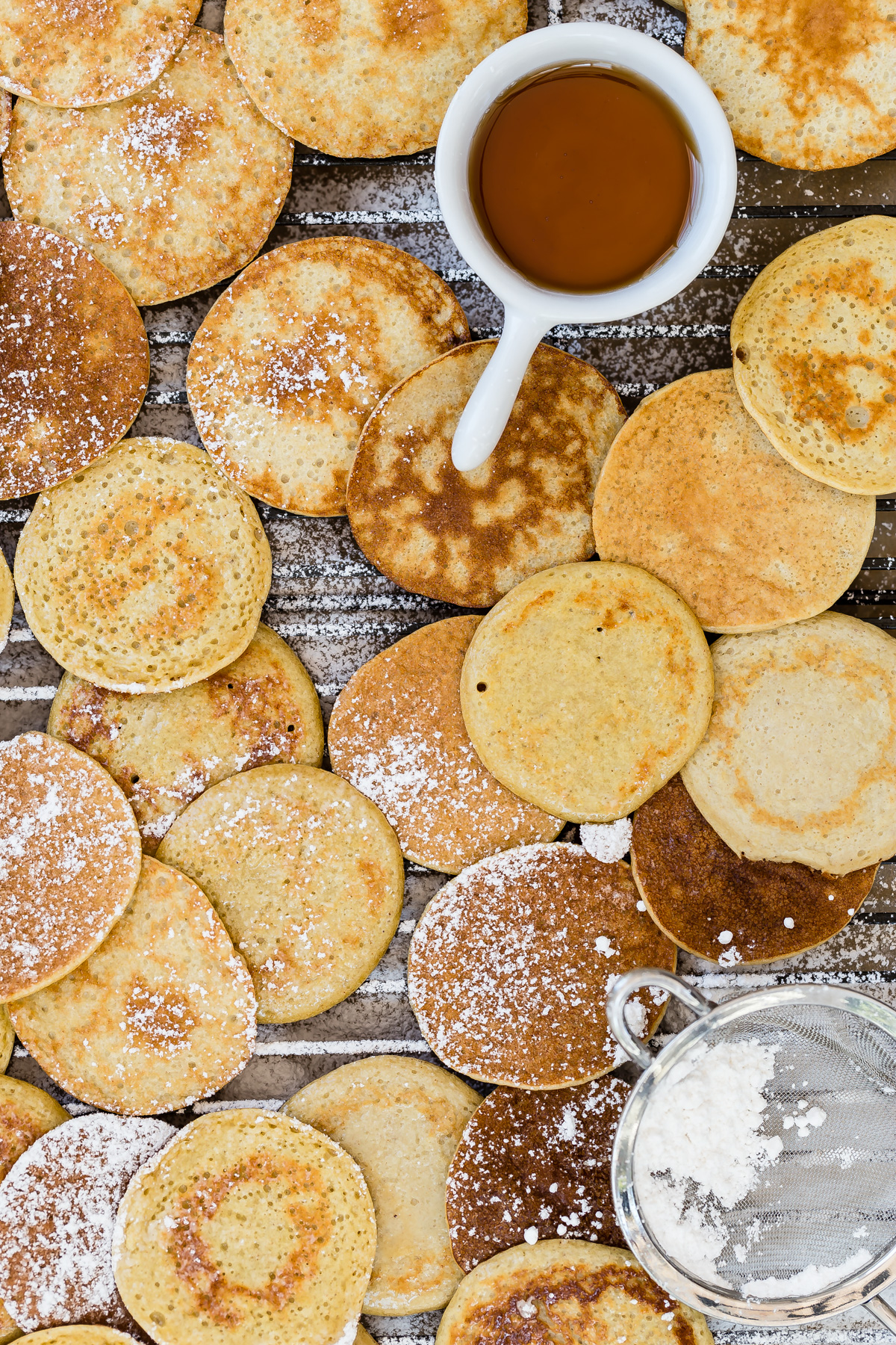 You can make them into silver dollar shapes by adding just a tablespoon of the batter on a hot griddle or a more if you want them to be really large. I’ve even rolled them up and filled with coconut whipped cream which is truly the ultimate!