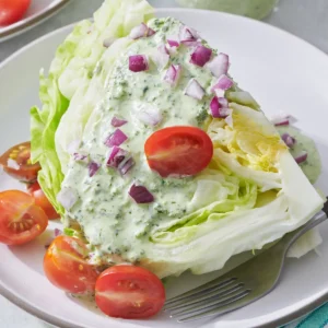 - Drizzle with Dressing:Â Generously drizzle the prepared Green Goddess dressing over the salad, ensuring each wedge is evenly coated.