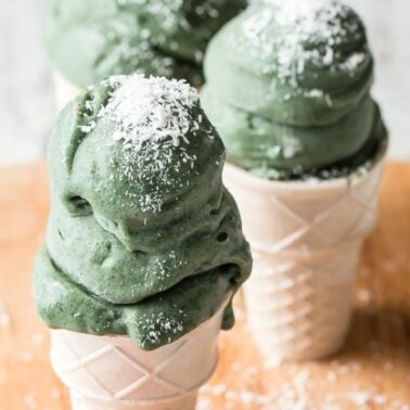 Serve immediately, or scoop into cones and set in the freezer for a few minutes to firm up!