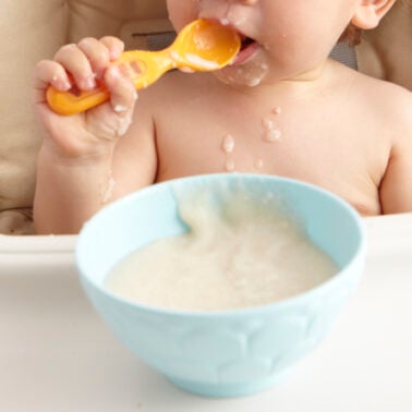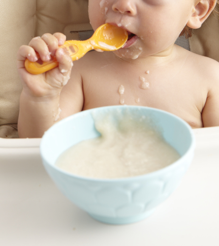 At this time, you’ll also want to start giving your baby rice cereal everyday. Rice cereal contains the highest levels of iron, a basic necessity for fast-growing infants. Mix one teaspoon of rice cereal for every 4 to 5 teaspoons breastmilk or formula to make it easier to digest. Kenya still loves rice cereal.