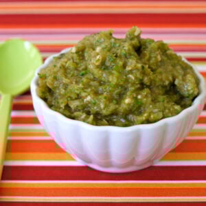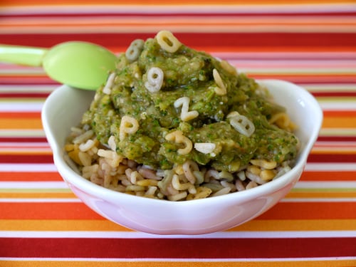 It wasn’t until after my kids were out of the baby food puree stage that I realized just how easy it was to cook for them. Now I see so clearly how just a few veggies mixed with a little somethin’ somethin’ (pasta sauce and parmesan in the case of this recipe) can transform simple vegetables into something magical. Watch your baby’s face as he tries his first, then second, then third bites of this delicious Italian Green Vegetable Puree. I always found that seeing the wonder on my kids’ faces as they started discovering new foods and flavors to be among the most exciting and precious moments of my early mommyhood.