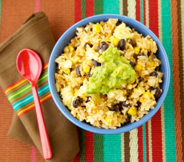 This Mexican Fried Rice dish has quickly become one of our family favorites. I happened to be working on the recipe the other week when Chloe, my little egg and bean eater, came home famished from an afternoon play date. She took some outside to eat and kept coming back in every few minutes with her empty bowl asking me for more. Before I knew it, she had finished thirds!