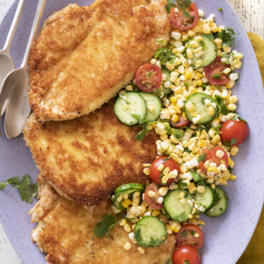 Tuesday:ย Chicken Paillard with Summer Saladย and Herb Garlic Roast Potatoes! Super simple and absolutely delicious.ย