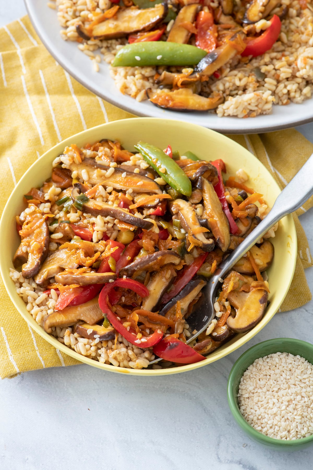 Monday:ย Shiitake Veggie Stir Fry for a quick and simple meatless Monday meal that everyone LOVES!