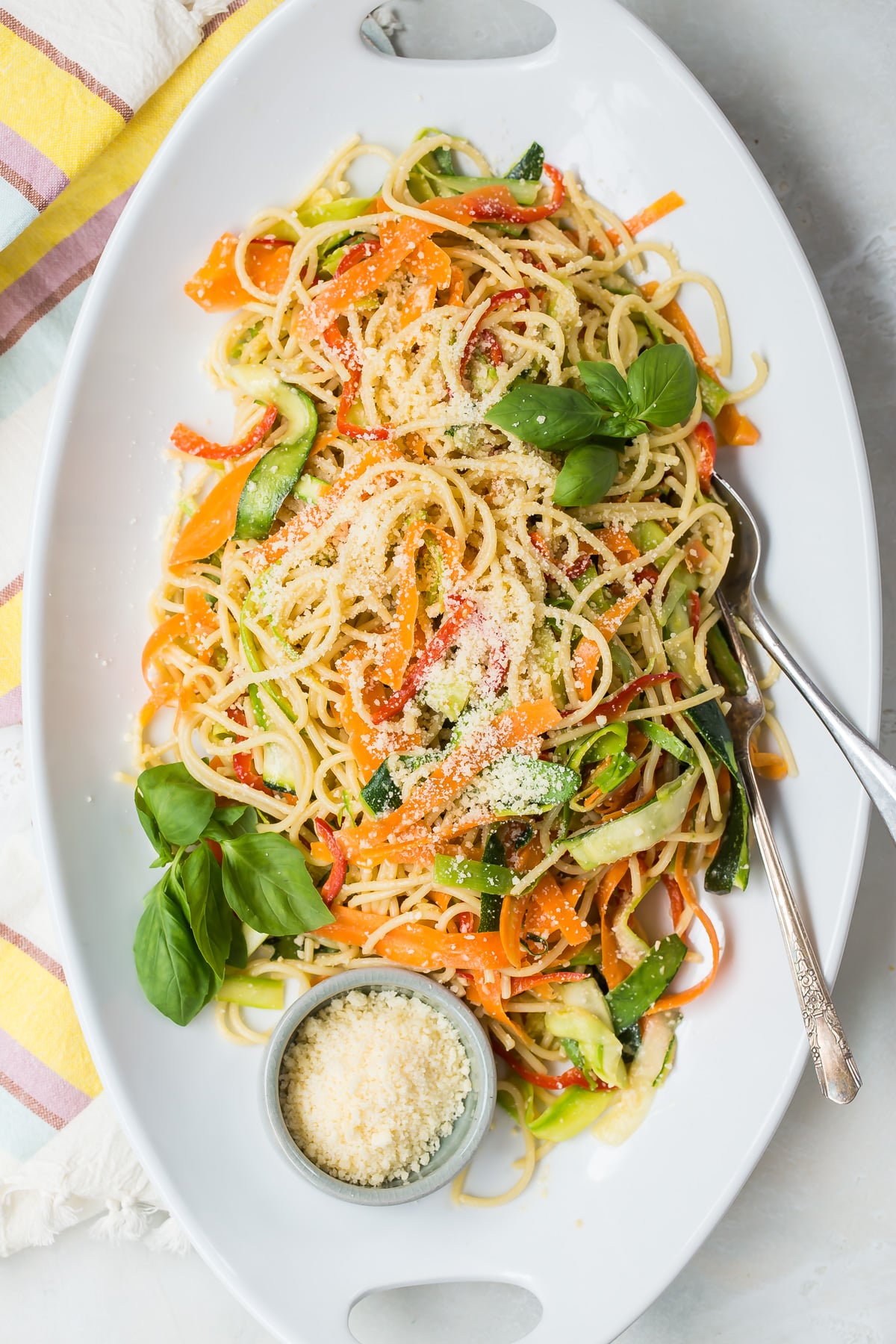 Monday:ย Pasta Primavera and Tomato Bruschetta. A great meatless Monday meal!