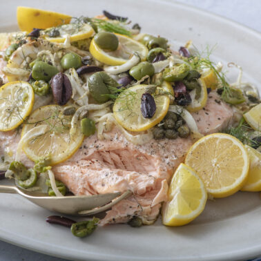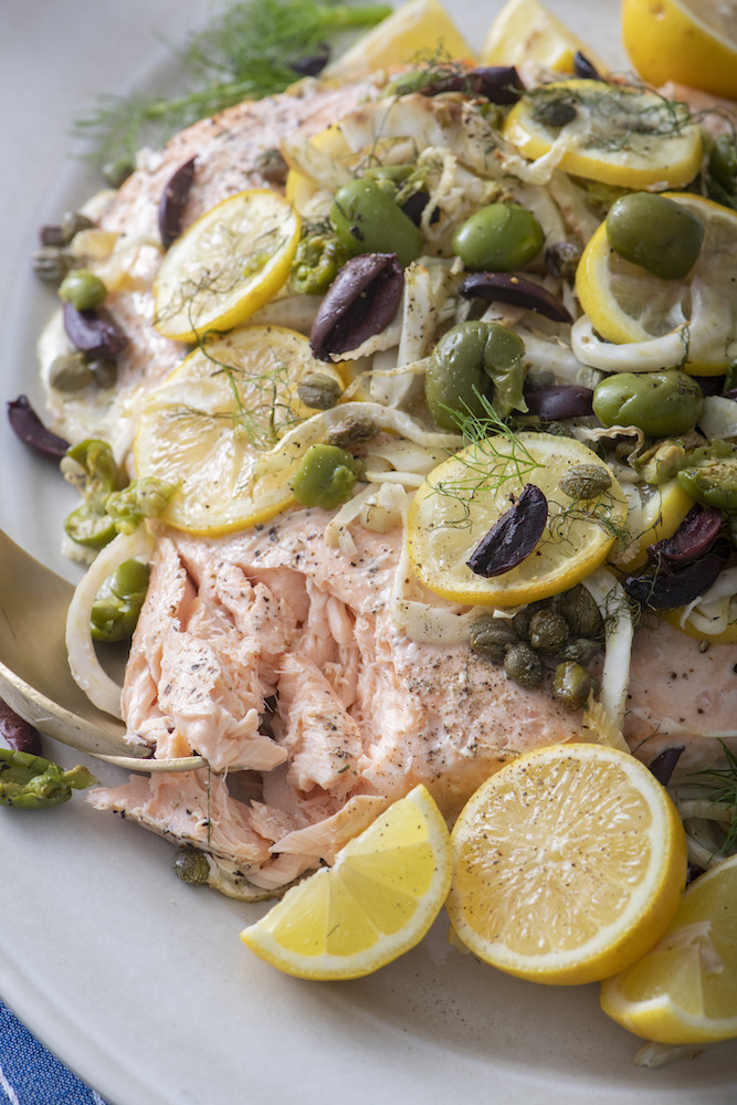 Sunday:ย Weโve been making thisย Salmon with Fennel, Citrus and Olivesย recipe on repeat! Itโs so light and summery. Weโre pairing it with a freshย Heirloom Tomato Salad.