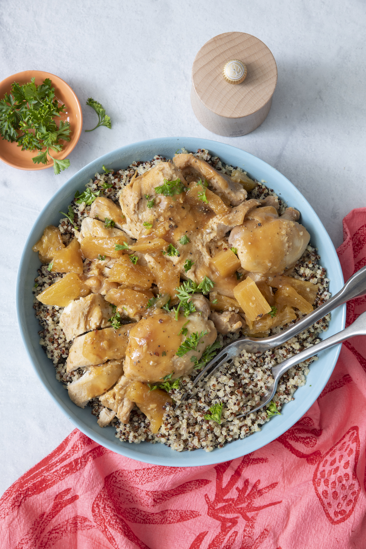 Tuesday:ย Crock Pot Hawaiian Chicken with Perfect Brown Rice and seasonal Air Fryer Veggies.