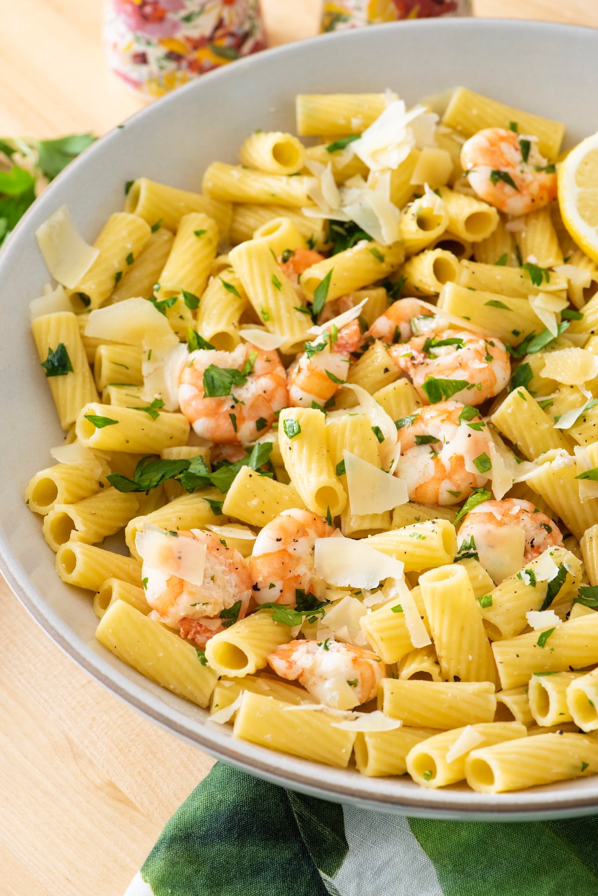 Thursday:ย Lemon Shrimp Pasta with Bacon Wrapped Air Fried Asparagus on the side. This pasta is super simple but also super yummy!