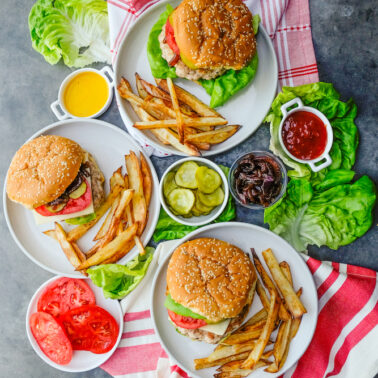 Thursday:ย Turkey Burgers with all the toppingsย and Fries for a quick and easy Thursday night meal.
