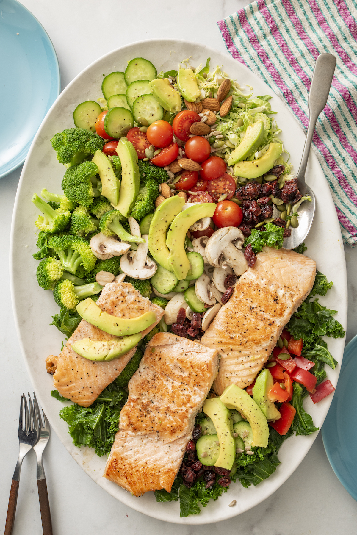 Wednesday: DIY Salmon Superfood Salad with Perfect Brown Rice. This meal is one of our absolute favorites and super healthy!