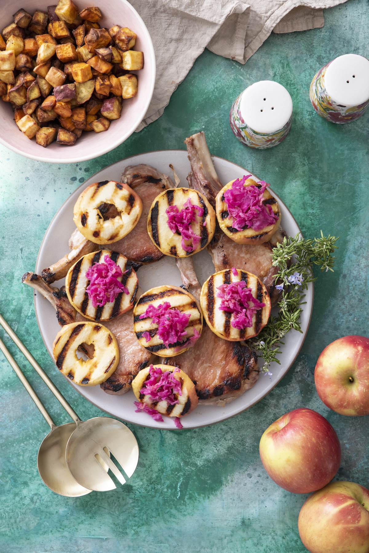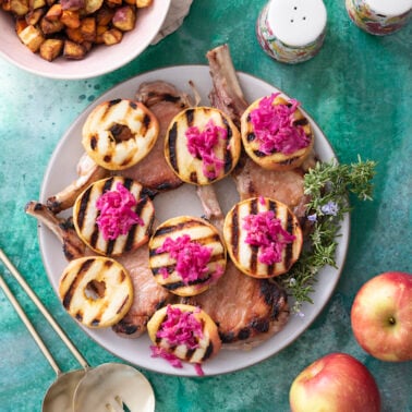 Thursday: Herb Brined Pork Chops with Sauteed Brussels Sprouts with Bacon and Crispy Smashed Potatoes.