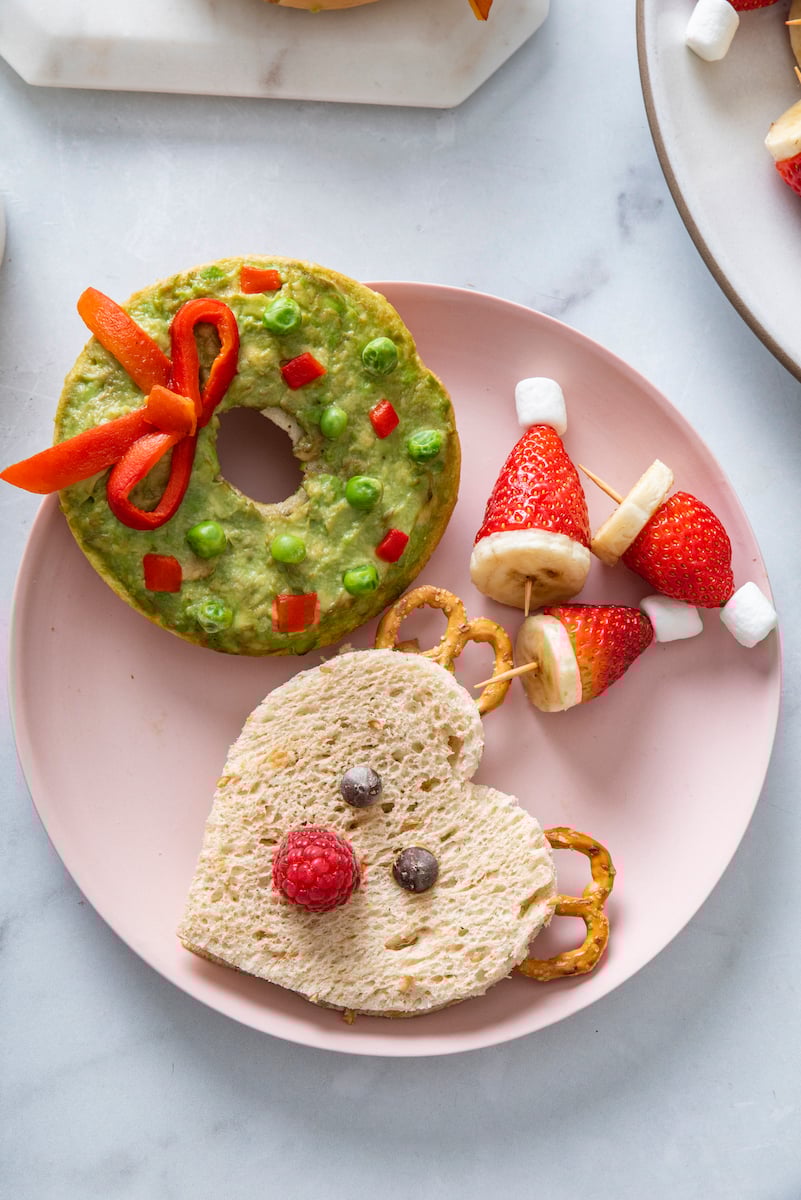 In the spirit of Christmas around the corner, Iโm makingย Reindeer Sandwichesย and Christmas Bagel Wreathsย withย Santa Hats for lunch. Also going to whip up some Cheese Grits!
