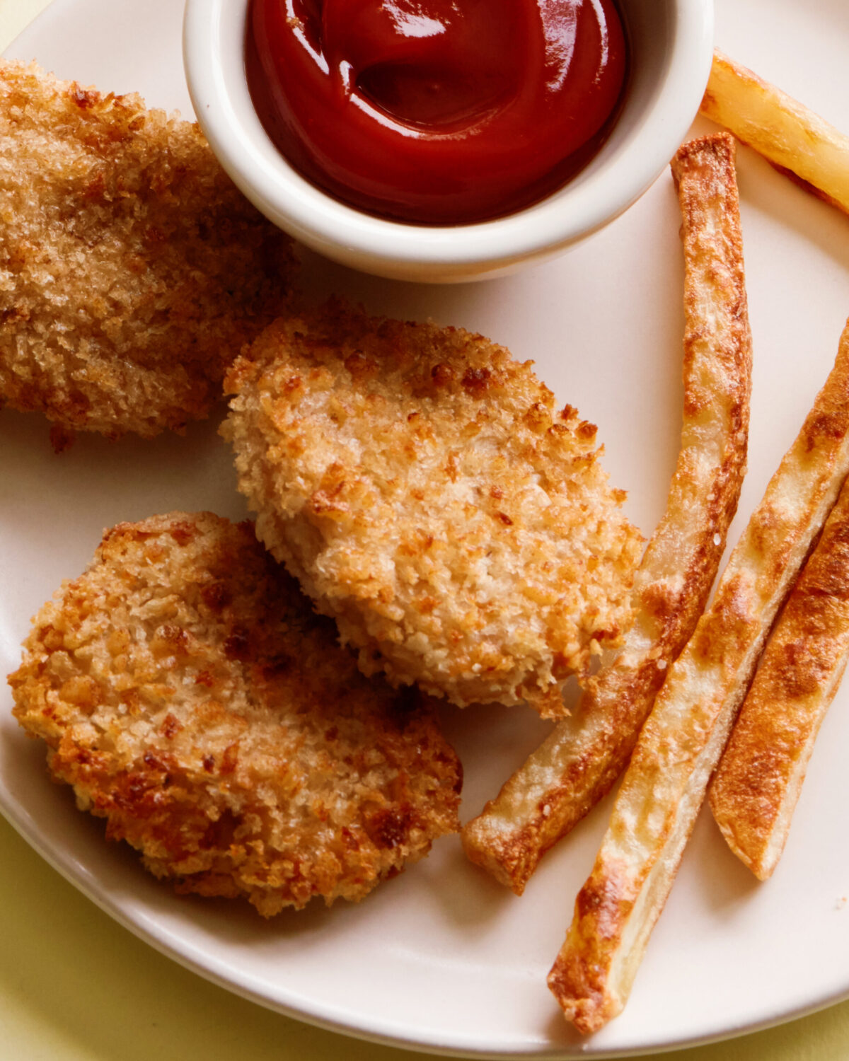 Tuesday:ย Crispy Chicken Nuggetsย with Sweet Potato Fries and Roast Broccoli.
