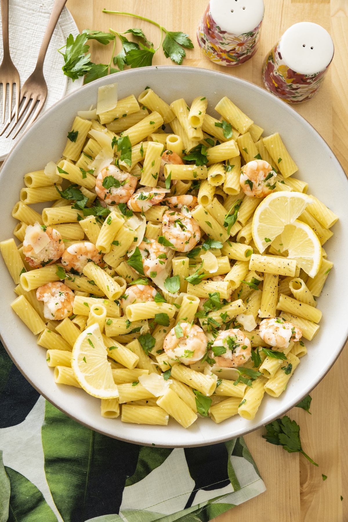 Sunday:ย Simple Lemon Shrimp Pastaย for Sunday supper. Plus a big farmers market salad and any leftovers from last weekโs farmers market haul.