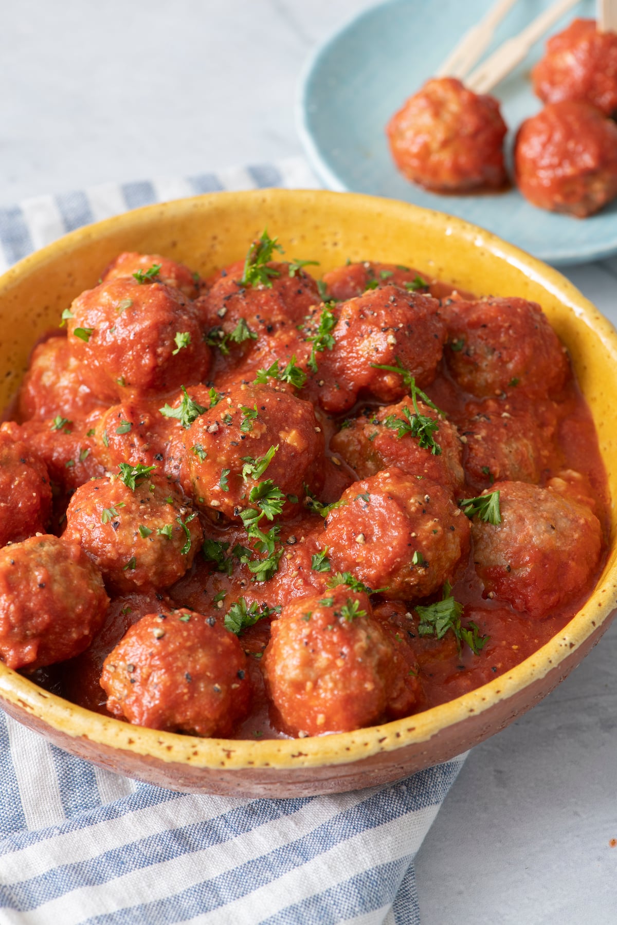 Sunday: Cheesy Meatballs over pasta to watch the Super Bowl! We’re also making some Air Fryer Veggies to round out the meal. I made a roundup of tons of my favorite game day recipes too if you’re hosting a big watch party!