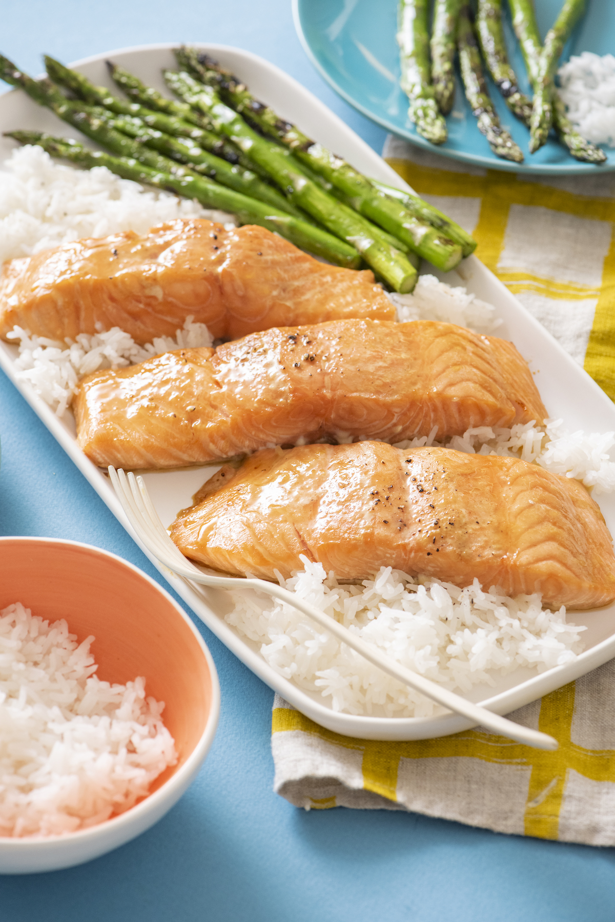 Tuesday: Sweet Gingery Tofu with Grilled Lemon Asparagus and Herb Garlic Roast Potatoes.