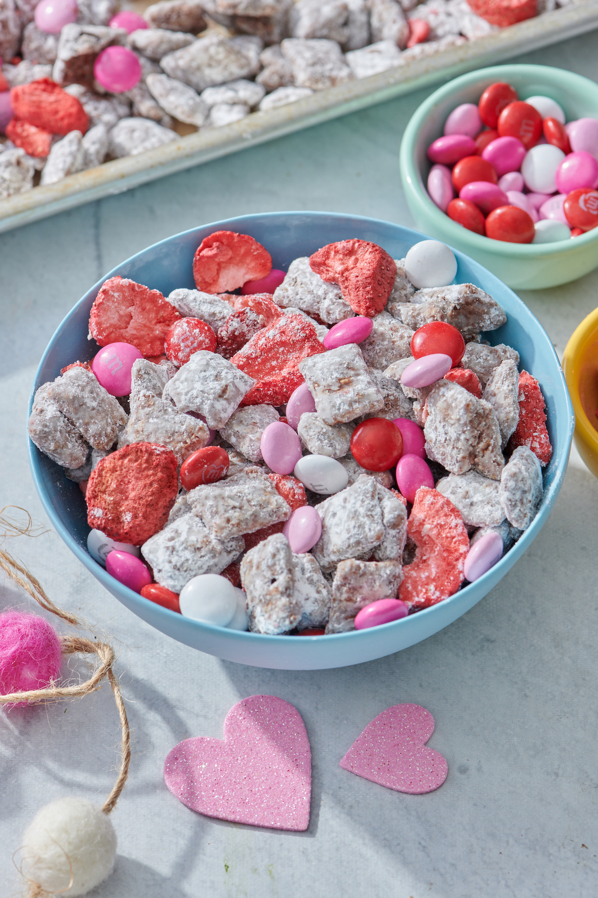Protein Balls and Chocolate Chia Seed Pudding for a protein fueled snack. Plus we’re making these adorable heart shaped Dried Cherry Scones, Red Beet and White Bean Hummus and Valentine’s Day Puppy Chow for snacking!