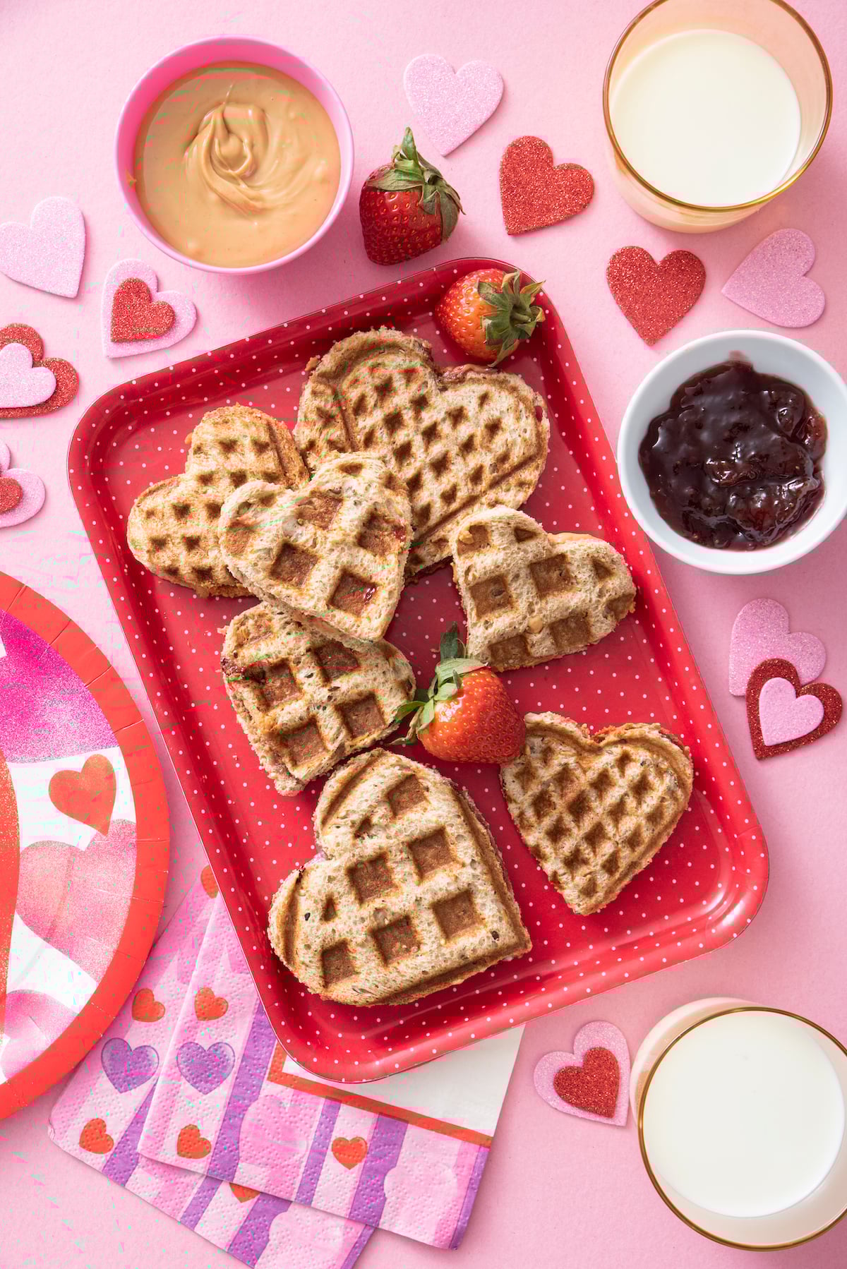 Super easy Mexican Egg & Cheese Quesadillas are up for lunch this week. We always get tons of avocados from the farmers market each week so we’re going to use them to make Baked Avocado Eggs and Avocado Toast too. And then the always adorable Waffle Heart Sandwiches for Valentine’s Day!