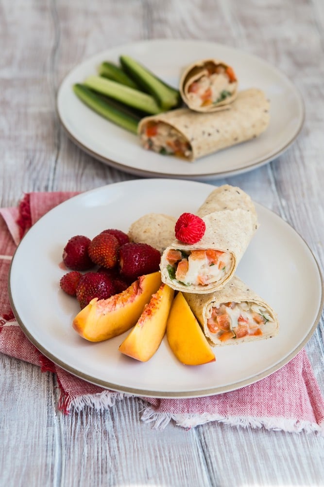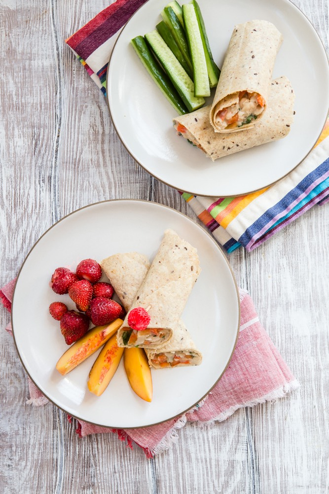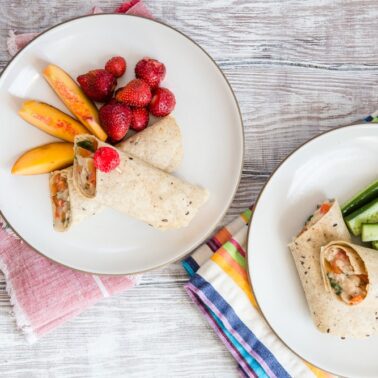 Today’s recipe resulted from one of those days. With the cup of leftover beans, 1/2 a bell pepper, two tortillas and handful of cilantro I had lying around, I made these Mexican Bean Tortilla Wraps for school lunch. They’re extremely simple to make and easy to hold, making them super kid friendly.