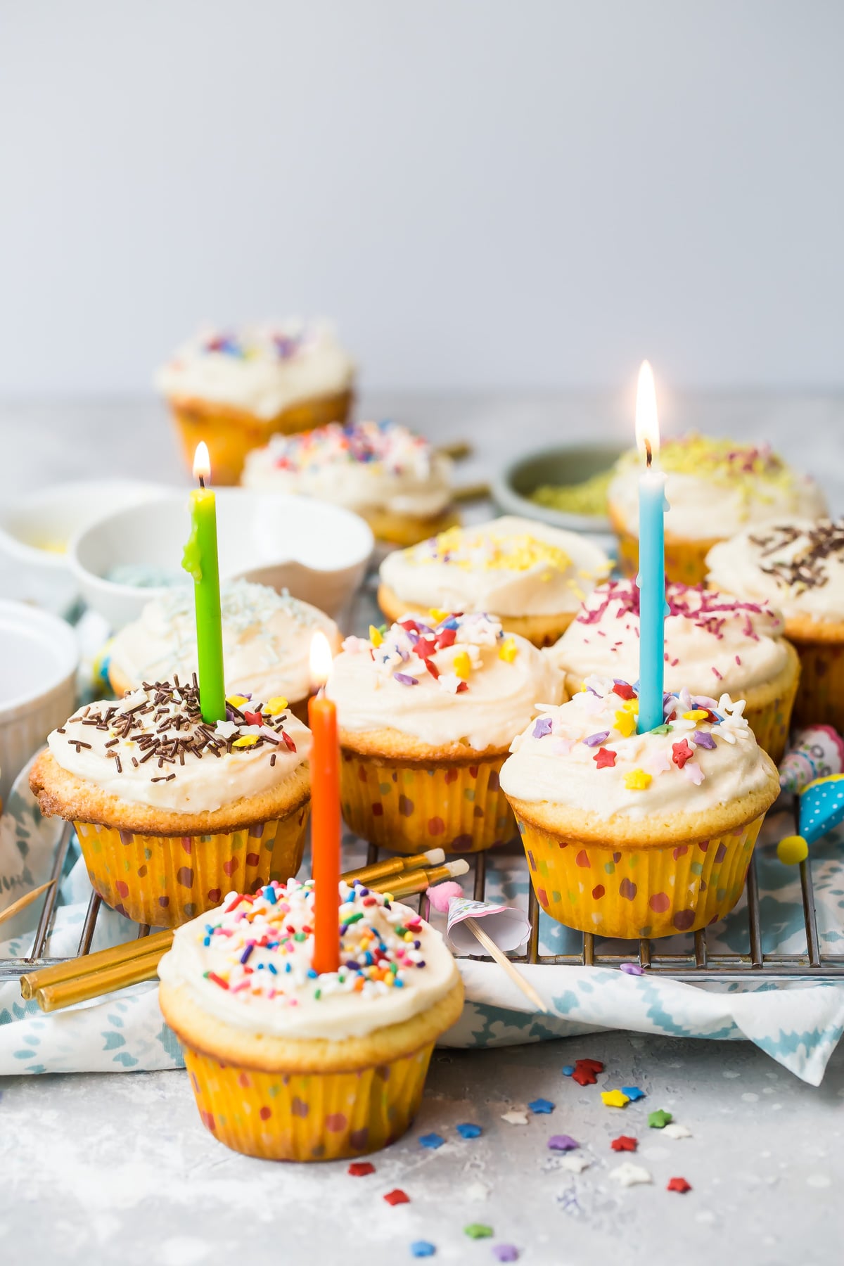 If there’s one dessert everyone loves at a birthday party or celebration it’s vanilla cupcakes. You can make these large or even as Mini Vanilla Cupcakes too!
