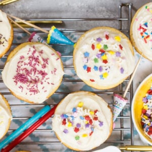 I love making miniature cupcakes for kids’ birthday parties, because they’re the perfect size for small hands, and even if your little one goes back for seconds (or even thirds), it still won’t equal the amount of one regular size cupcake.