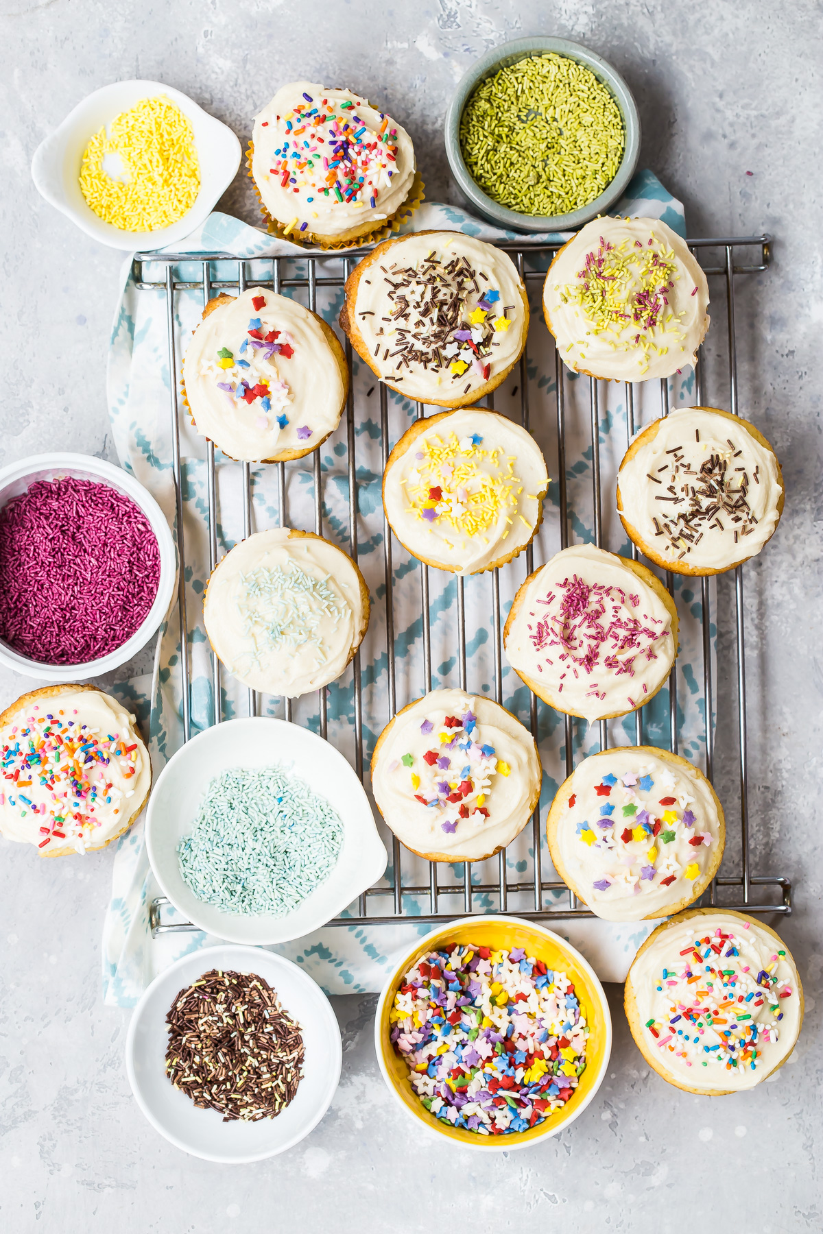 Plus, I’ve tried so many vanilla cupcake recipes over the years and I’m always taken by how overly sweet they are. These came out sweet — but not too much. Just the perfect amount in my opinion.