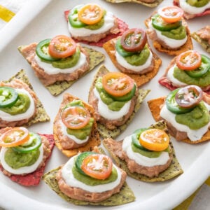 There’s nothing cuter than watching kids try to build a bite of nachos off of a platter heaping with an array of luscious ingredients trying to build the perfect bite. I’ve watched both of my kids attempt this when I make Greek Nachos, All Veggie Nachos, Healthy Nachos and even Buggy Nacho Dip on Halloween. There’s something about the balancing act of getting everything on top of the chip to create that perfect, satisfying bite.