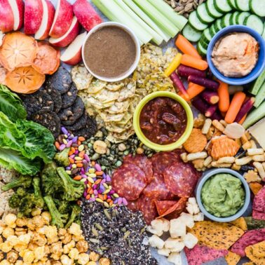 This nut-free snack board is perfect to serve as a fun appetizer when you have guests over for dinner.