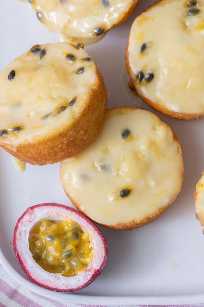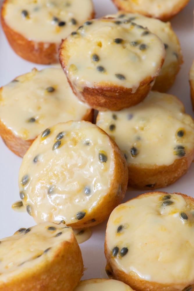 I made a batch of these for my ultimate taste tester (and fellow passionfruit lover), my daughter Chloe, and she was immediately obsessed! Our family went through the first batch pretty quickly and couldn’t wait for me to make more! I was really stoked everyone enjoyed them so I could have another recipe in my arsenal for passionfruit.