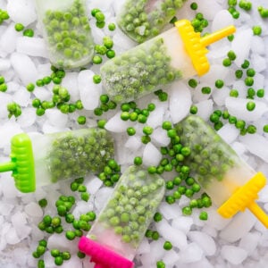 Want a time tested recipe that includes a vegetable and formed into a popsicle? That’s right, the combo exists and they’re shockingly delicious. I’ve been making these Pea Pops for 8 years and to this day after a skeptical friend of Kenya and Chloe’s tries it they end up falling in love. So much so that I’ve had a freezer full of different flavored popsicles and seen kids choose these over other sweet, fruity or yogurt ones.