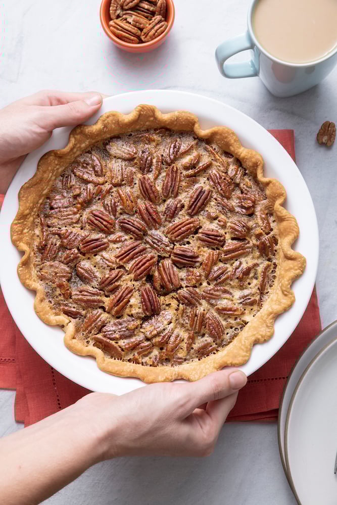 The dessert table at a holiday dinner is the best part. Load it up with tons of special treats like Maple Pumpkin Pie, Gluten-Free Apple Pie, Pumpkin Pie Parfaits and Pear and Pistachio Crisp to name a few. And with this recipe, put a big scoop of vanilla ice cream on top to take it to the next level! My family loves this Pecan Pie recipe and I know yours will too!